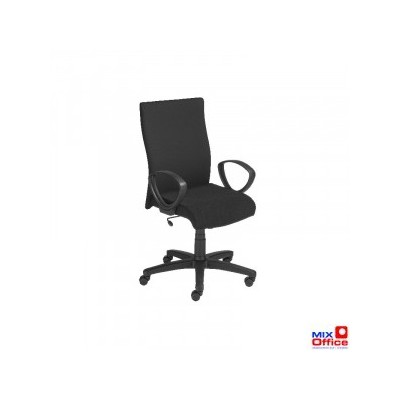 siedzisko i oparcie tapicerowane pianką i tkaniną welurową lub tkaniną z atestem trudnopalności_mechanizm umożliwiający swobodne kołysanie się, blokadę w pozycji do pracy, regulację siły oporu oparcia_podnośnik pneumatyczny zapewnia płynną regulację wysokości fotela_stałe podłokietniki_stabilna, nylonowa podstawa_kółka do powierzchni dywanowych w standardowej wersji, jako opcja kółka do powierzchni twardych